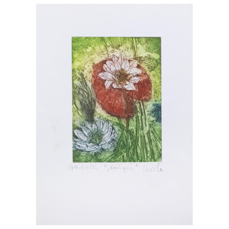 ARTISTA DEL XX SECOLO Ninfee litografia cm 50x34 con cornice 89x73 indistintamente titolata e indistintamente firmata in basso al centro