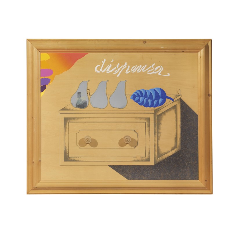 serigrafia e collage (vetri, legno, pomelli in legno, tempera)