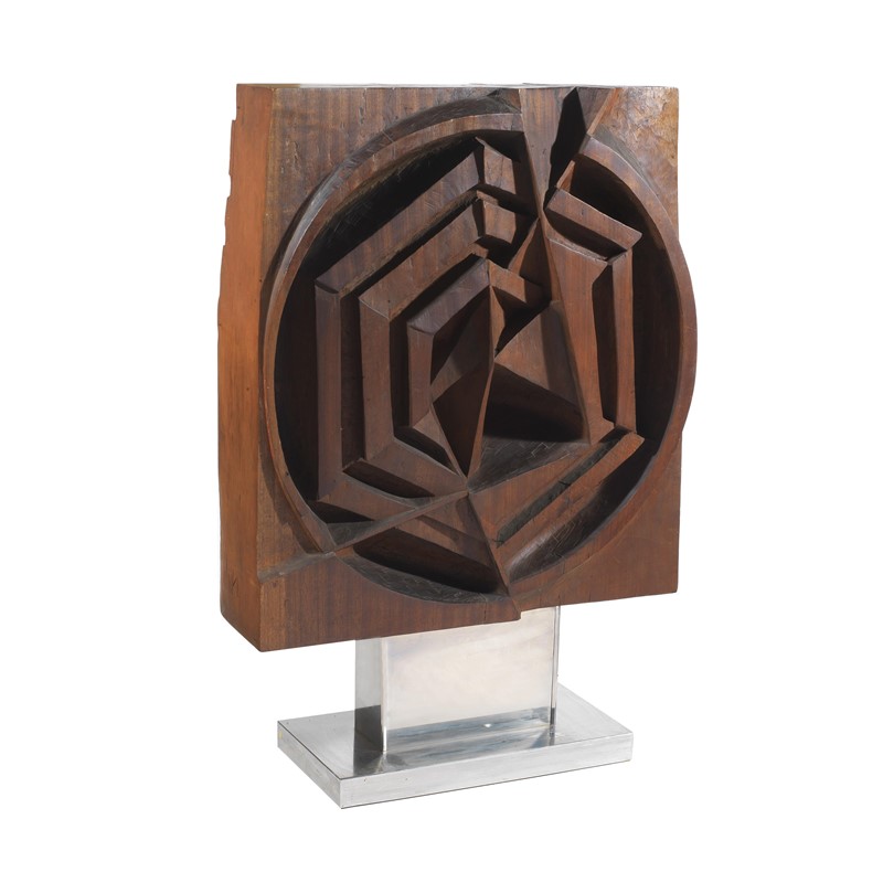 L'opera è stata realizzata dallo scultore giapponese Fuke Yasuo, nato nel 1929 nella prefettura Kagawa, il quale ha apposto a incisione la sua firma su uno dei due lati più stretti del blocco ligneo. Essa inoltre presenta caratteristiche formali e tecniche del tutto analoghe a quelle che incivano la produzione 'milanese' di Fuke. Nel 1962 infatti si trasferì in Italia iscrivendosi all'Accademio di Belle Arti di Brera a Milano, seguendo i corsi di scultura tenuti da Marino Marini. Milano rappresentava il maggior polo di attrazione per le avanguardie artistiche in Italia, soprattutto quelle scultoree.