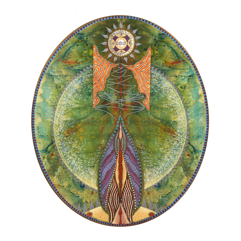tecnica mista su tavola ovale (tempera e inchiostro)