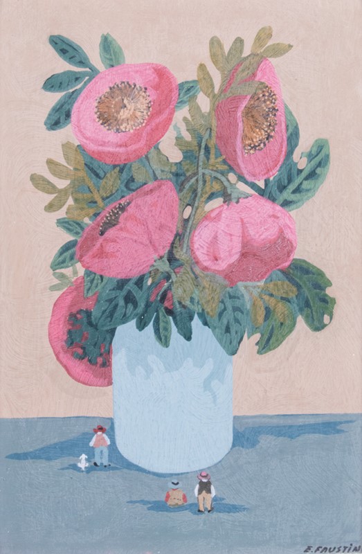 Firma in basso a destra: E. Faustini; firma e titolo la verso: E. Faustini / (Fiori): timbro Enrico Faustini.
