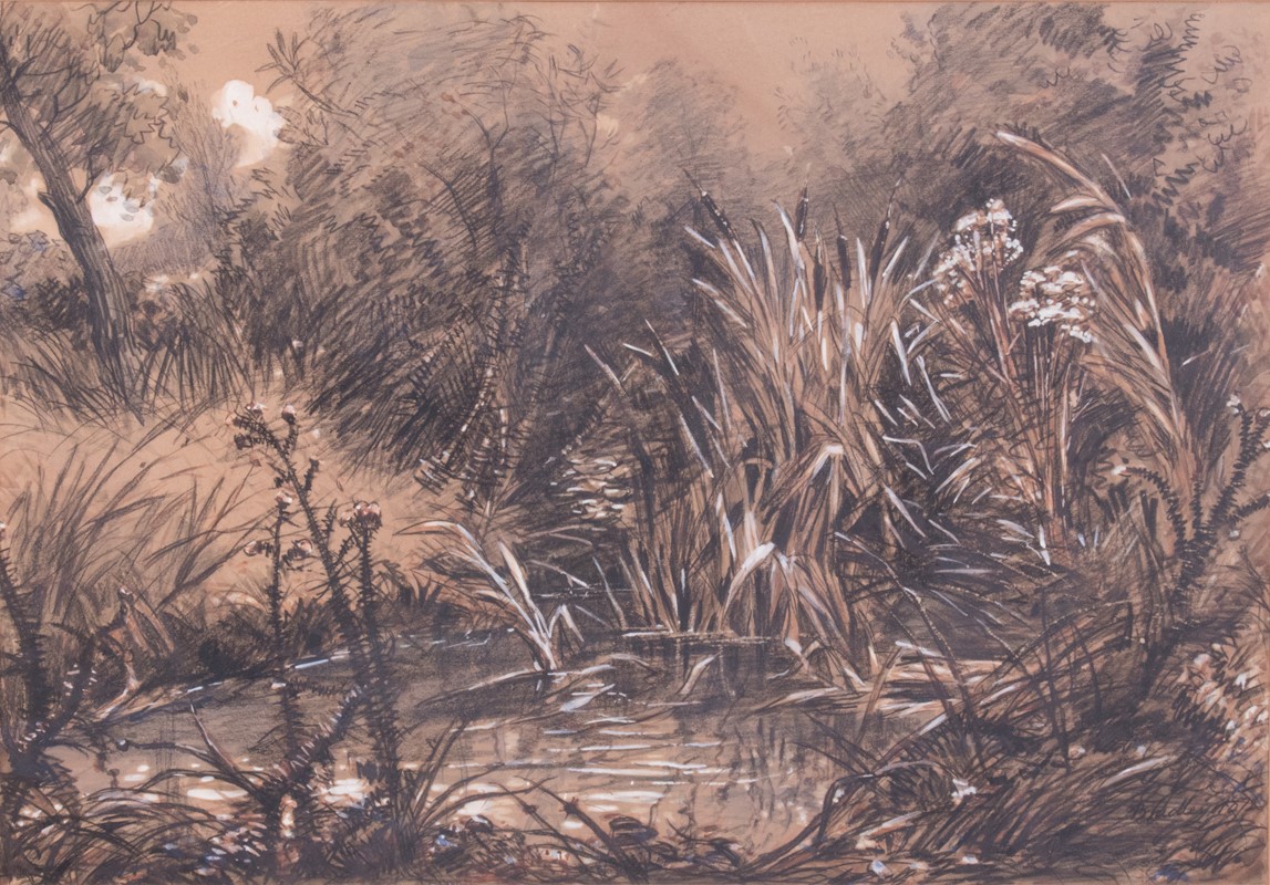 1872 Firma e data in basso a destra: Bradley 1872. Al verso: etichetta con scritta A tangled corner sketch from nature a chiaroscuro / J.H. Bradley.