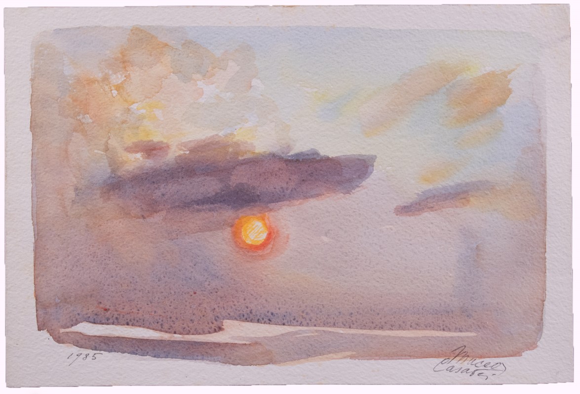 1985 Firma in basso a destra: Maceo / Casadei, data in basso a sinistra: 1985; titolo, data e firma al verso: Sole con nube / 1985 / Maceo Casadei.