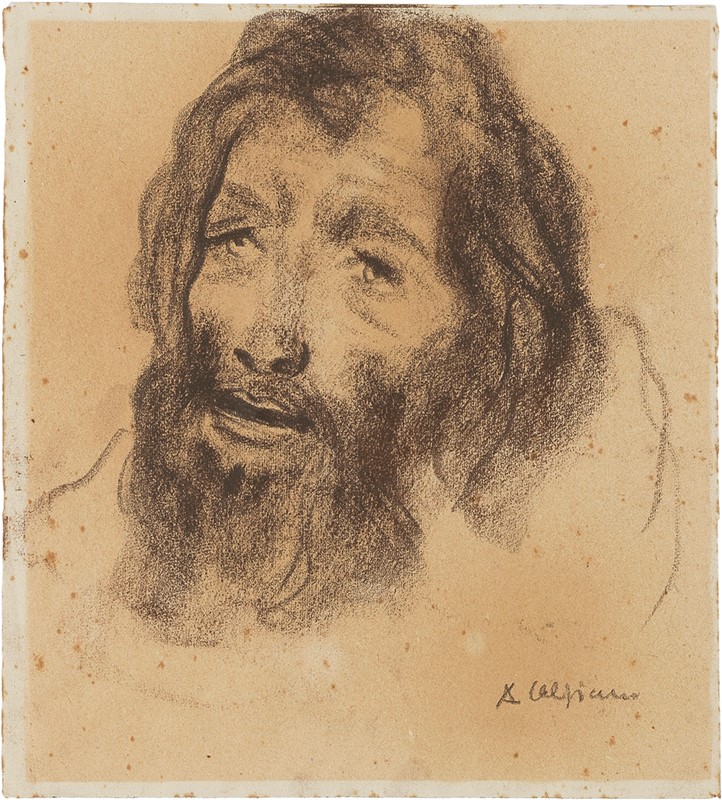 A) Testa di uomo, pastello su carta, cm. 30x27. Firma in basso a destra: A. Caligiani;