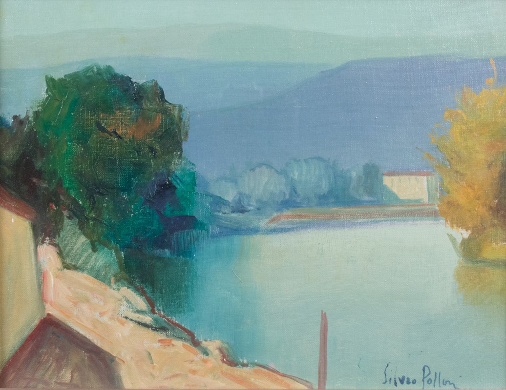Firma in basso a destra e al verso sulla tela: Silvio Polloni.