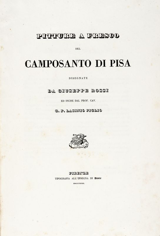 In-folio (mm 485x325). Pagine [4], 41, [3] con 46 belle tavole calcografiche fuori testo in fine. Graziosa incisione a mo' di finalino a pagina 41. Marginoso esemplare, probabilmente ricomposto, con fioriture sparse e alcune pagine allentate. Legatura coeva in mezza tela con titoli in nero entro cornici concentriche ai piatti e su tassello al dorso. Quest'ultimo quasi totalmente staccato; ampi aloni di umidità al piatto anteriore e altre mende.