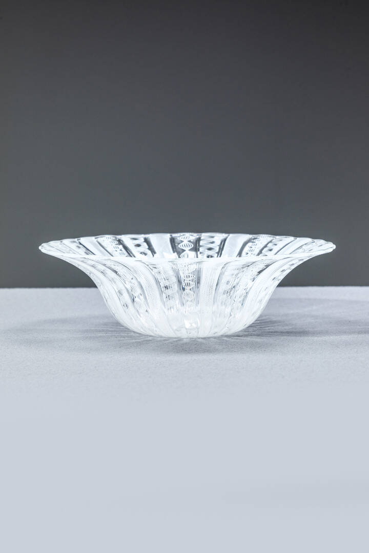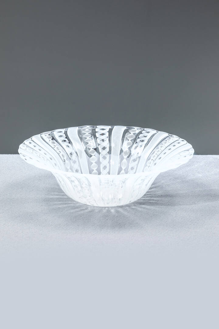 Centrotavola in vetro a filigrana e zanfirico. Marcato sotto la base Anni '60 cm [..]
