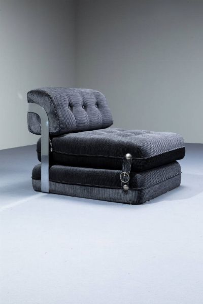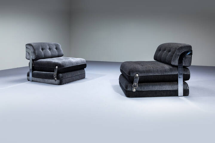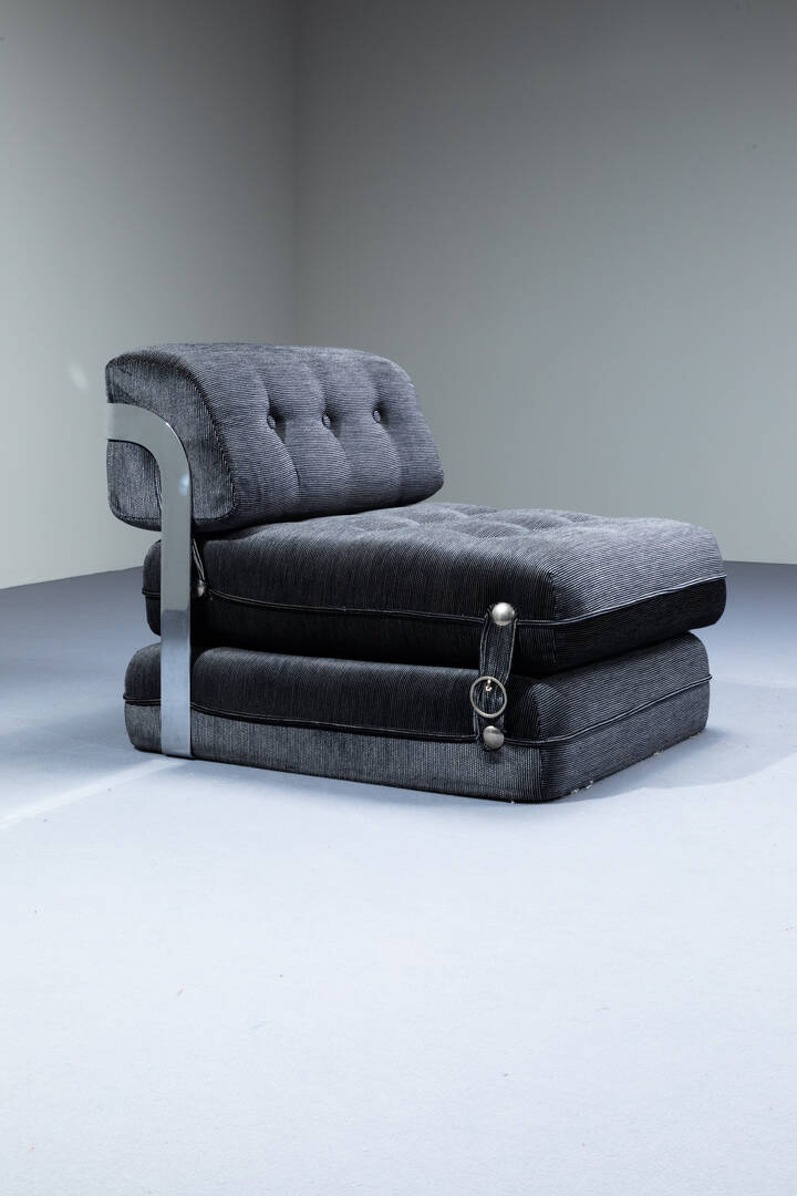 Coppia di poltrone in acciaio cromato imbottitura rivestita in tessuto. Anni '70 [..]