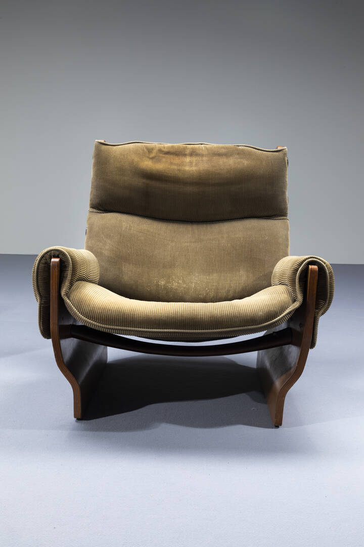 Struttura in legno e rivestimenti in velluto. Produzione Tecno 1965 Etichetta del Produttore cm 80x85x85 Bibl.: Giampiero Bosoni Tecno. L'eleganza discreta della tecnica Skira 2011 pag. 120 - 121