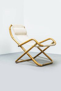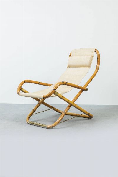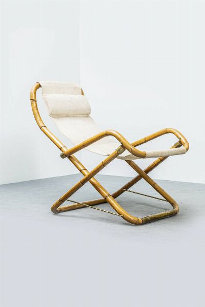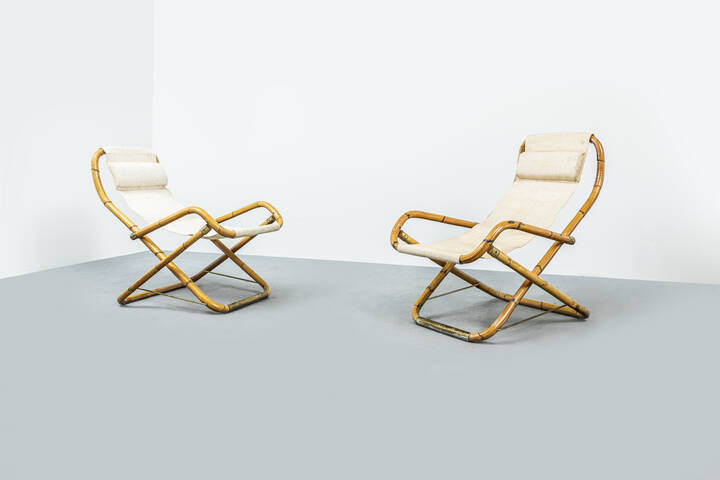 Coppia di poltrone pieghevoli con struttura in bamboo e ottone rivestimenti in [..]