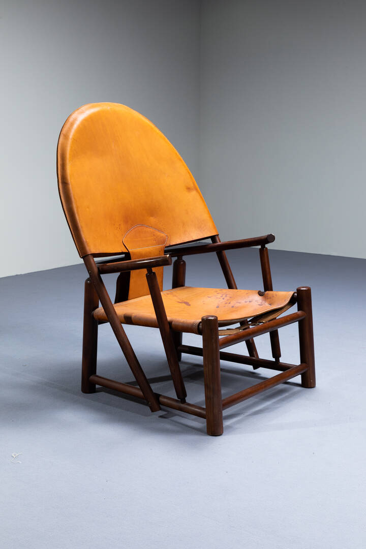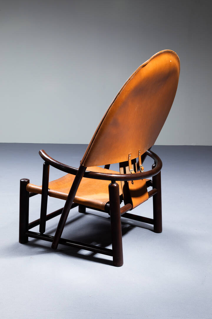 Legno curvato e verniciato seduta in cuoio. Prod. Danese anni '60 cm 103x76x75