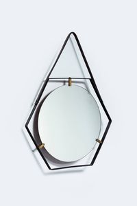 Specchio con cornice in metallo verniciato attacco a muro in cuoio. Anni '60 cm [..]