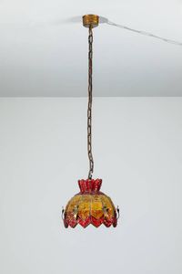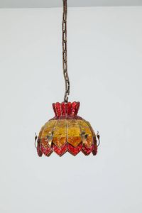 Lampadario con struttura in metallo e vetro colorato. Anni '60 cm 44x36