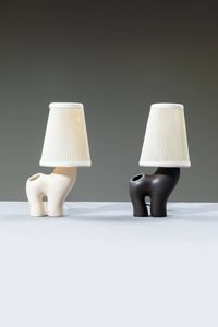 Coppia di lampade da tavolo in ceramica modellata a forme zoomorfe. Marcate Louis [..]