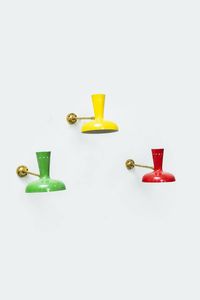 Tre lampade a parete in metallo verniciato e ottone. Anni '50 cm 30x16