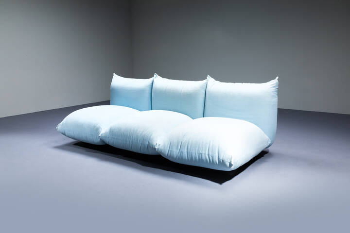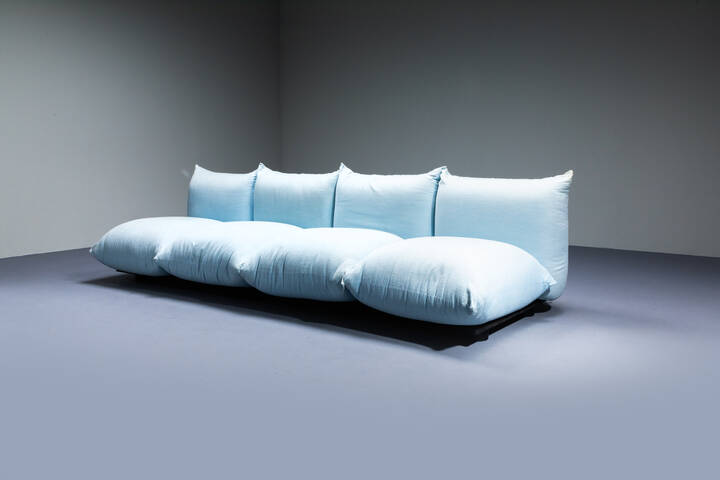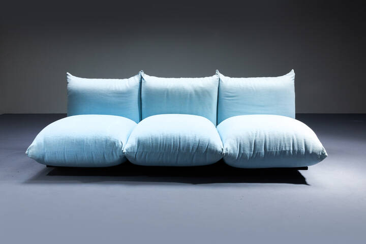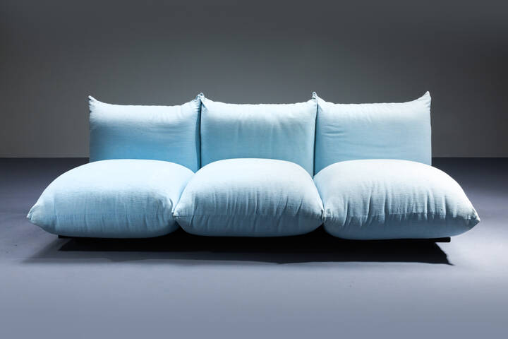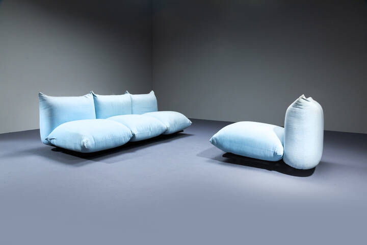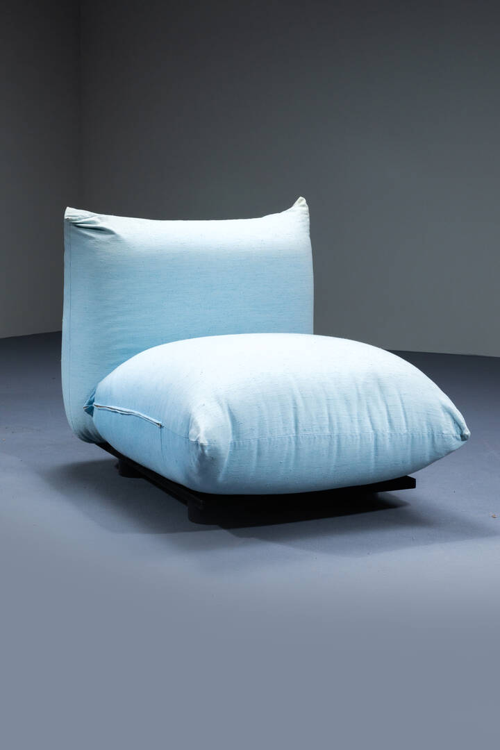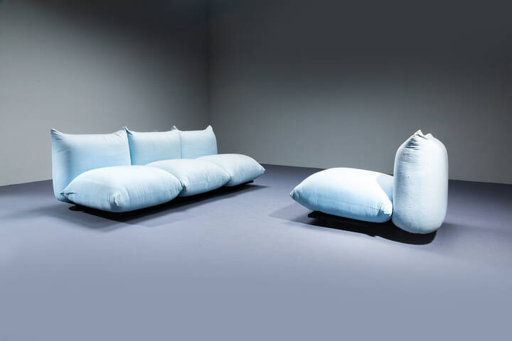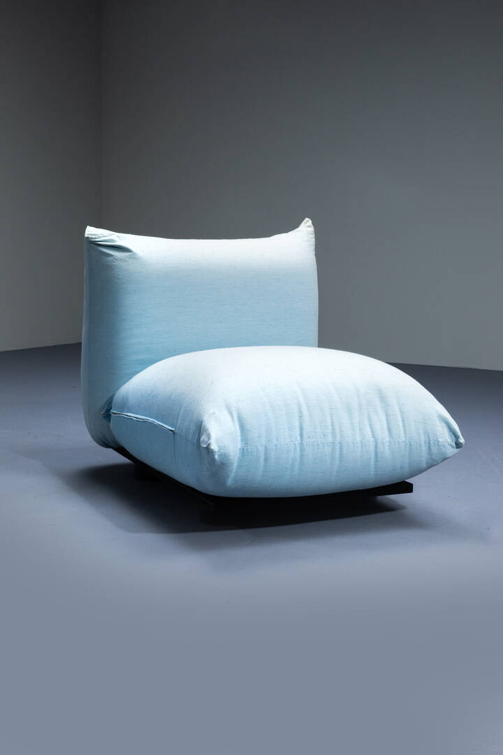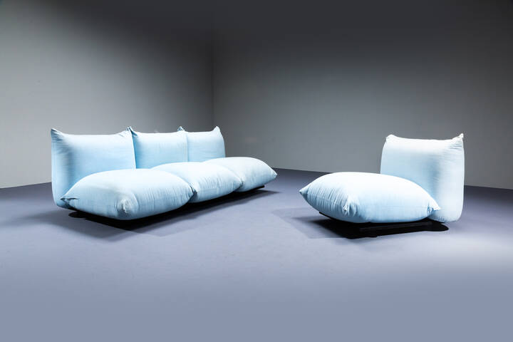 Struttura portante in profilato metallico imbottitura in schiuma poliuretanica rivestita in tessuto. Prod. Arflex anni '70 divano cm 70x184x90 poltrona cm 70x64x90 Bibl.: Giuliana Gramigna Repertorio del Design Italiano1950-2000 Allemandi 2011 pag. 191