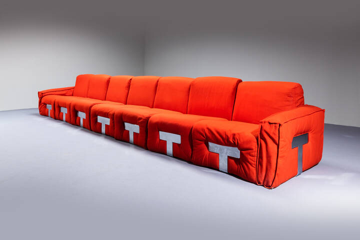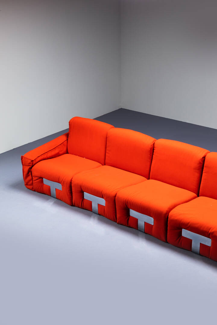 Divano modulare con imbottitura rivestita in tessuto. Anni '70 ogni modulo cm 72 [..]
