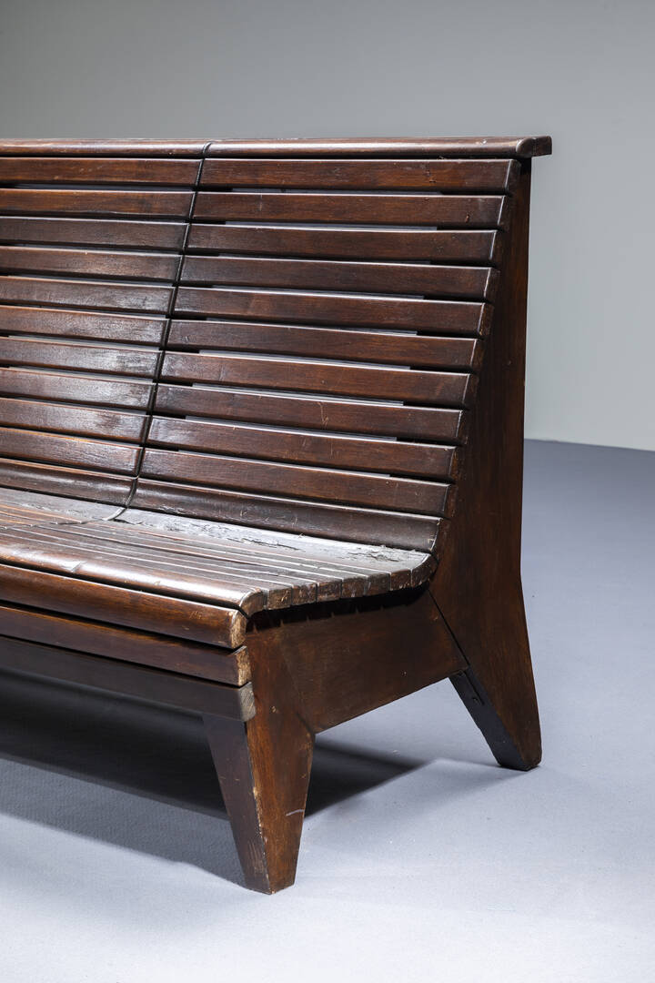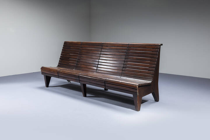 Grande panca con struttura listellare in legno. Anni '40 cm 90x220x72