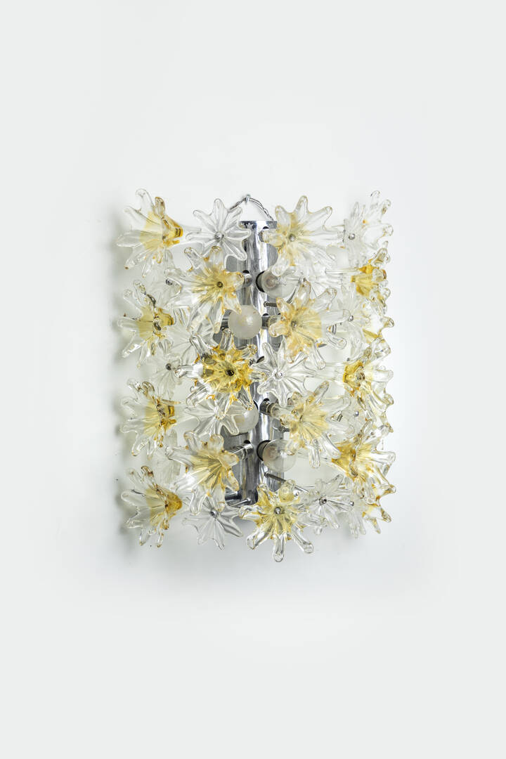 Lampada a muro composta da elementi in vetro modellato a caldo a forma di fiori. Prod. Venini 1961 cm 24x46x33
