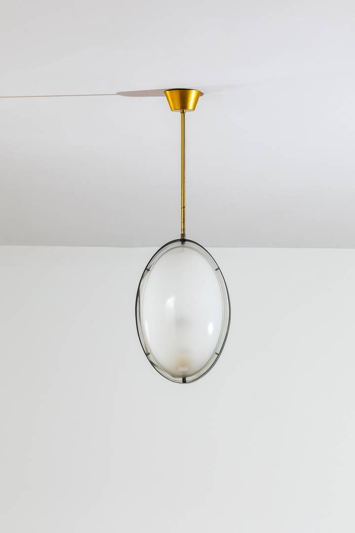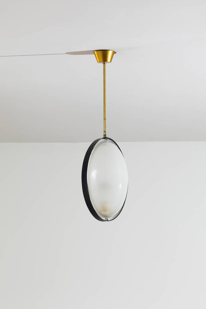 Lampada a sospensione in ottone e metallo verniciato diffusore in vetro. Anni '50 [..]