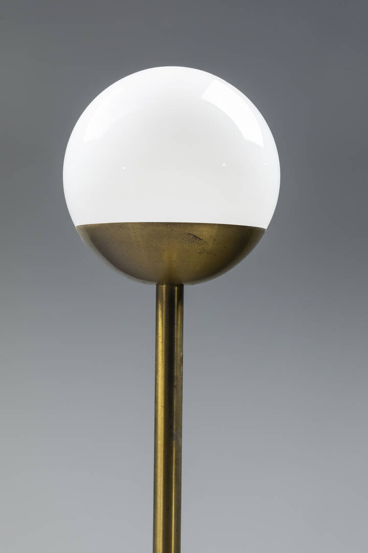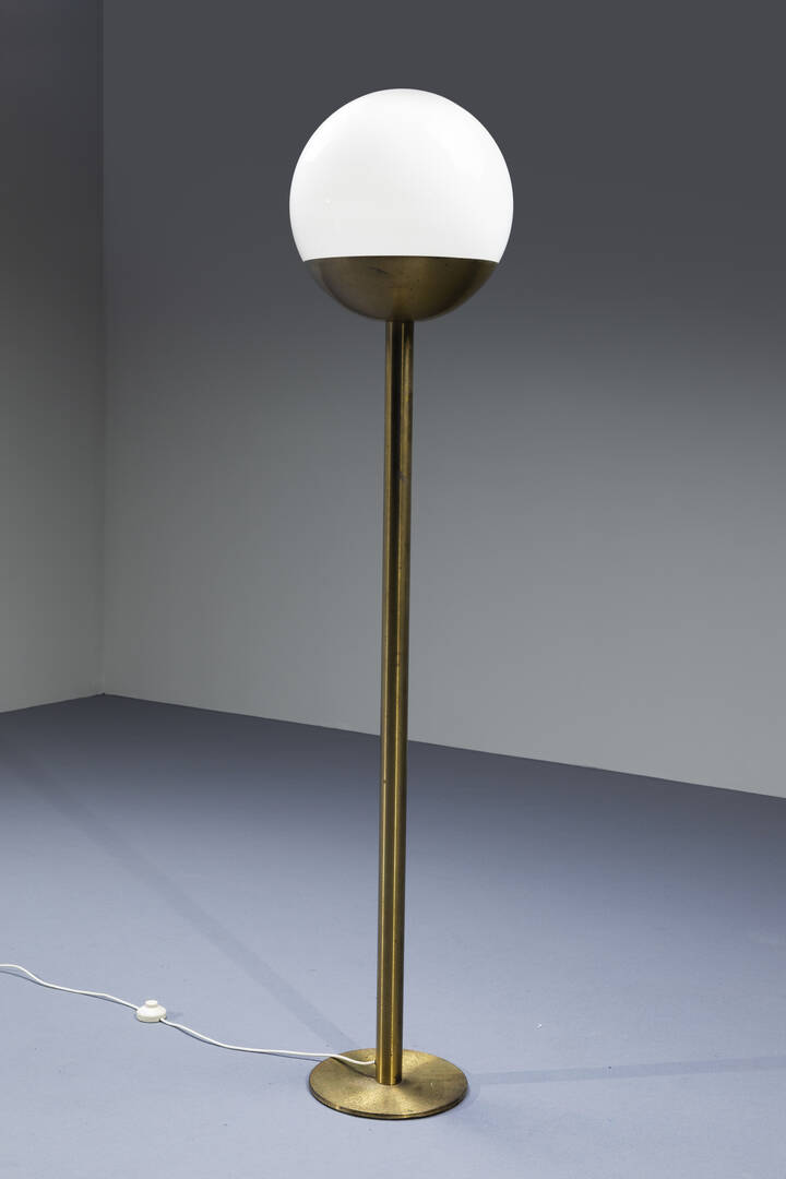 Lampada da terra in metallo diffusore in vetro opalino. Anni '70 h cm 175