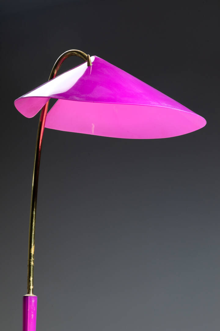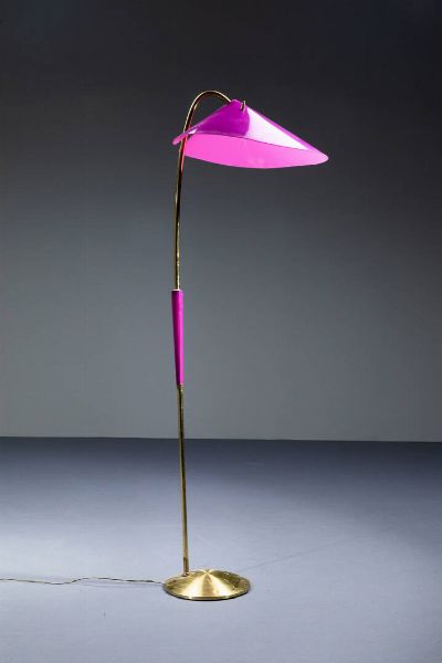 Lampada da terra in ottone con paralume in perspex. Anni '50 h cm 152