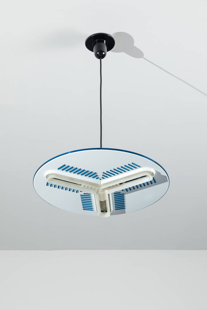 Vetro smerigliato acciaio tubolare cromato. Prod. Arteluce1986 diam cm 50 Scatola originale Bibl.: Giuliana Gramigna Repertorio del Design Italiano1950-2000 Allemandi 2011 pag. 372