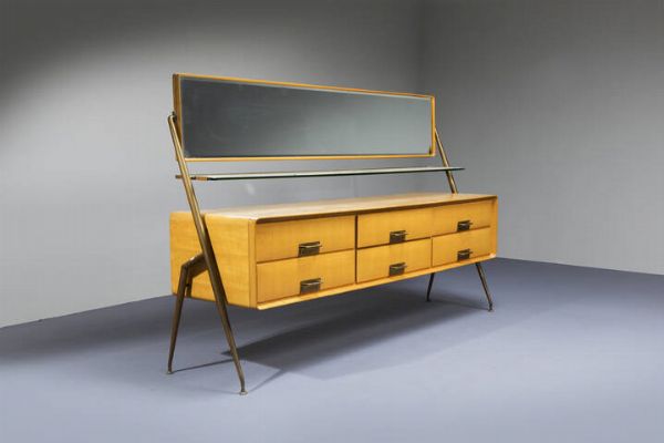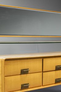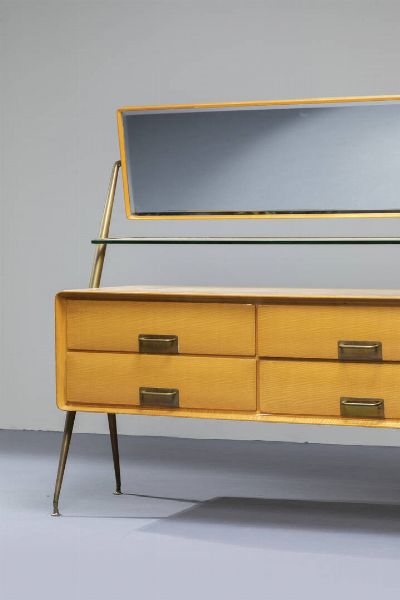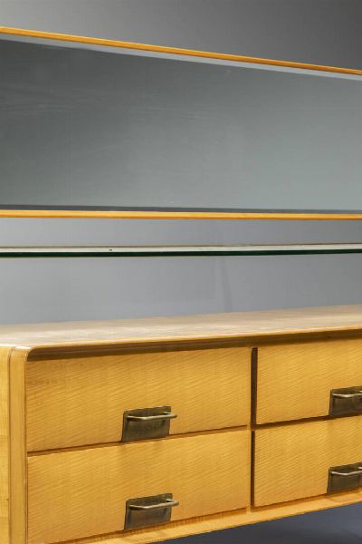 Mobile contenitore in legno d'acero ottone nichelato e piano in vetro. Anni '50 [..]