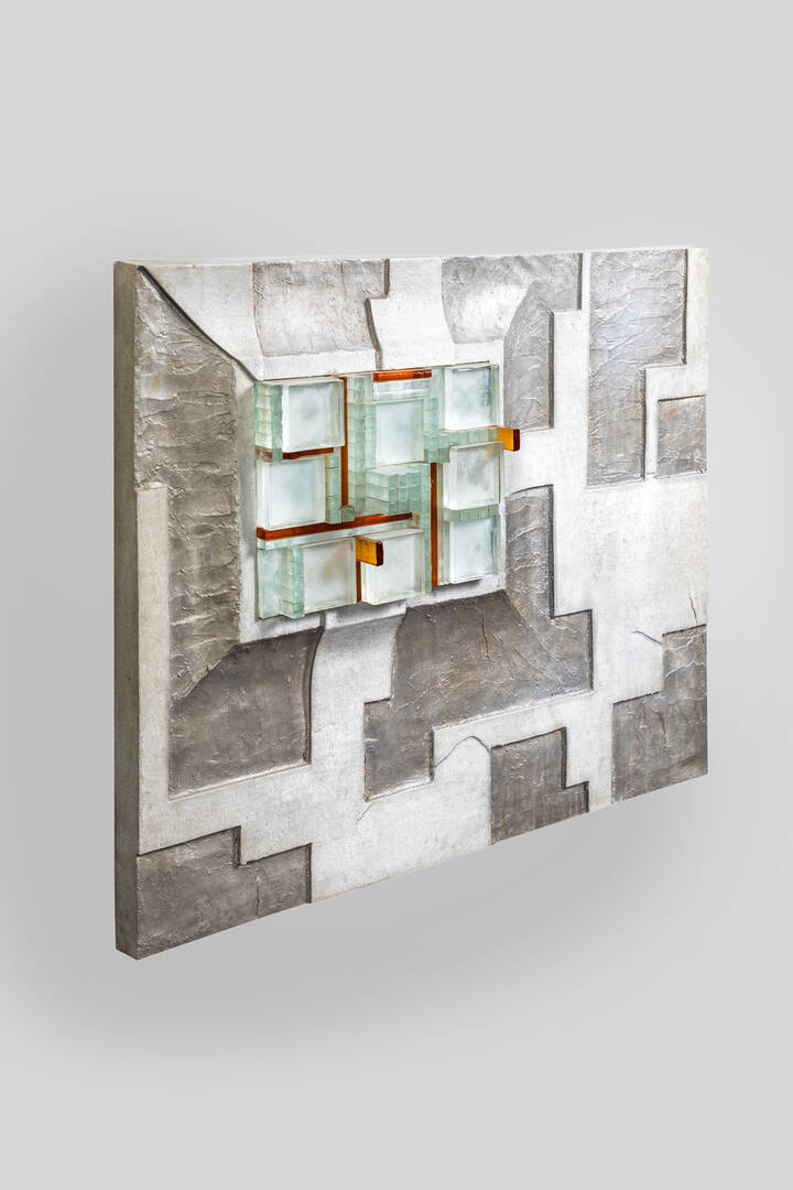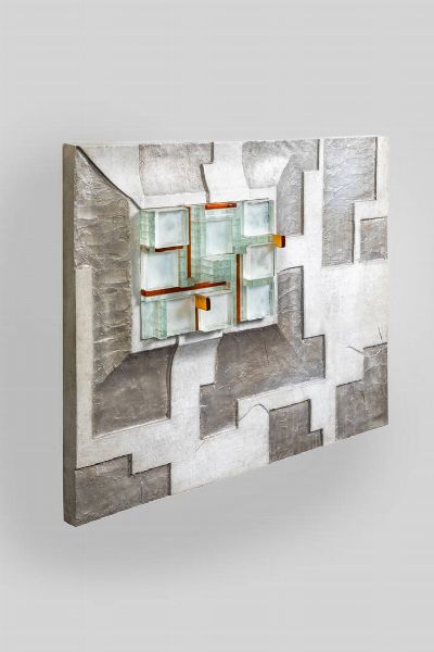 Pannello in alluminio pressofuso con inclusioni in vetro. Anni '70 cm 102x119
