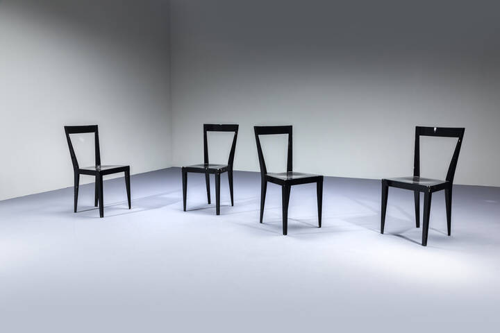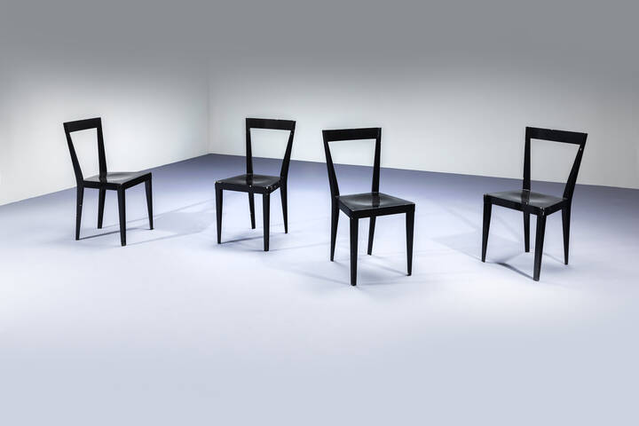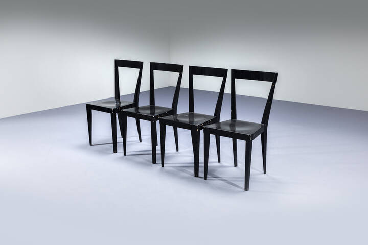 Quattro sedie in legno laccato. Anni '60 cm 84x40x46
