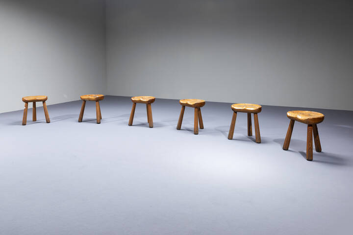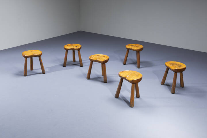 Sei sgabelli in legno. Anni '50 cm 41x35x27