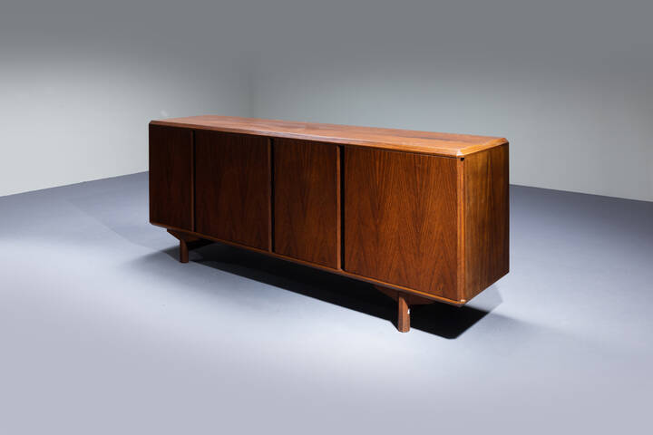Sideboard in legno fronte a quattro ante. Anni '70 cm 85x211x49