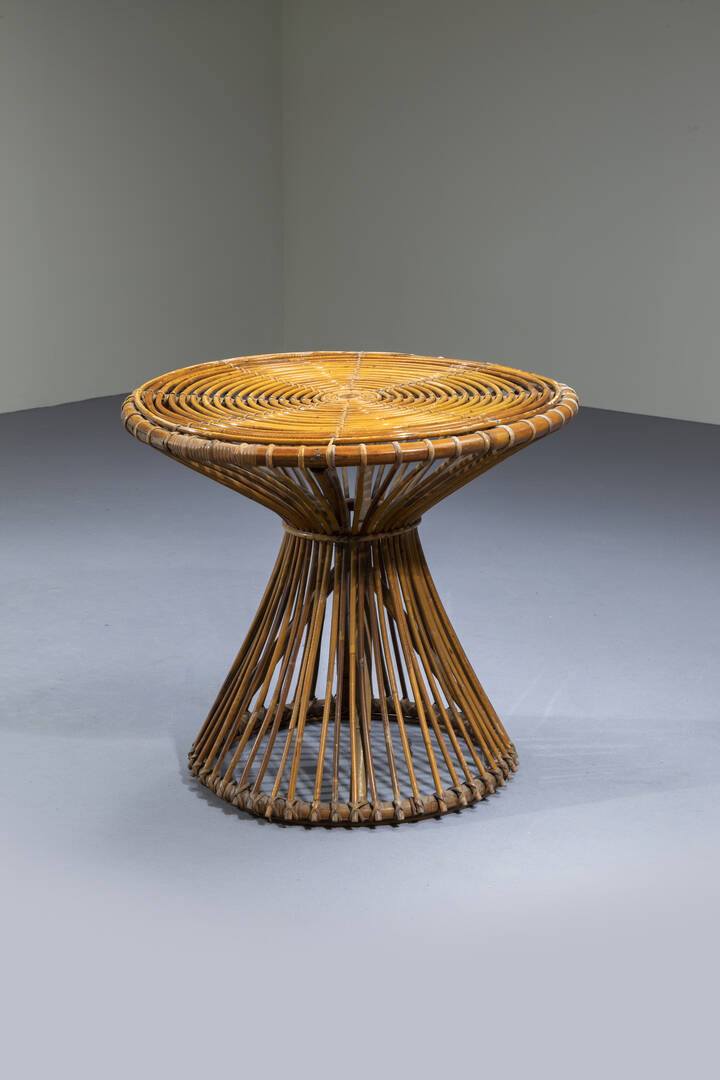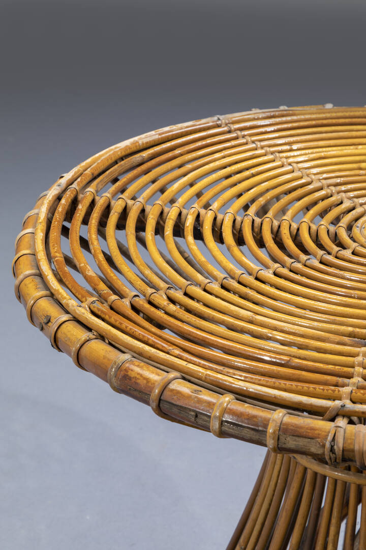 Tavolino in vimini e canna d'India. Anni '50 cm 66x74
