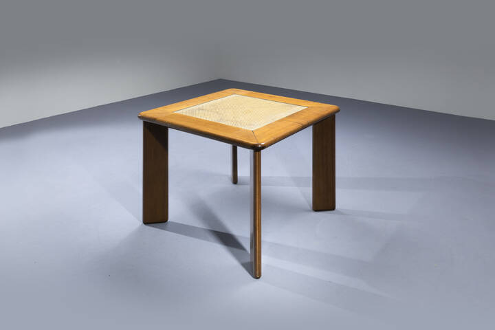 Tavolo con struttura in legno parte centrale in paglia di Vienna ricoperta da vetro. [..]