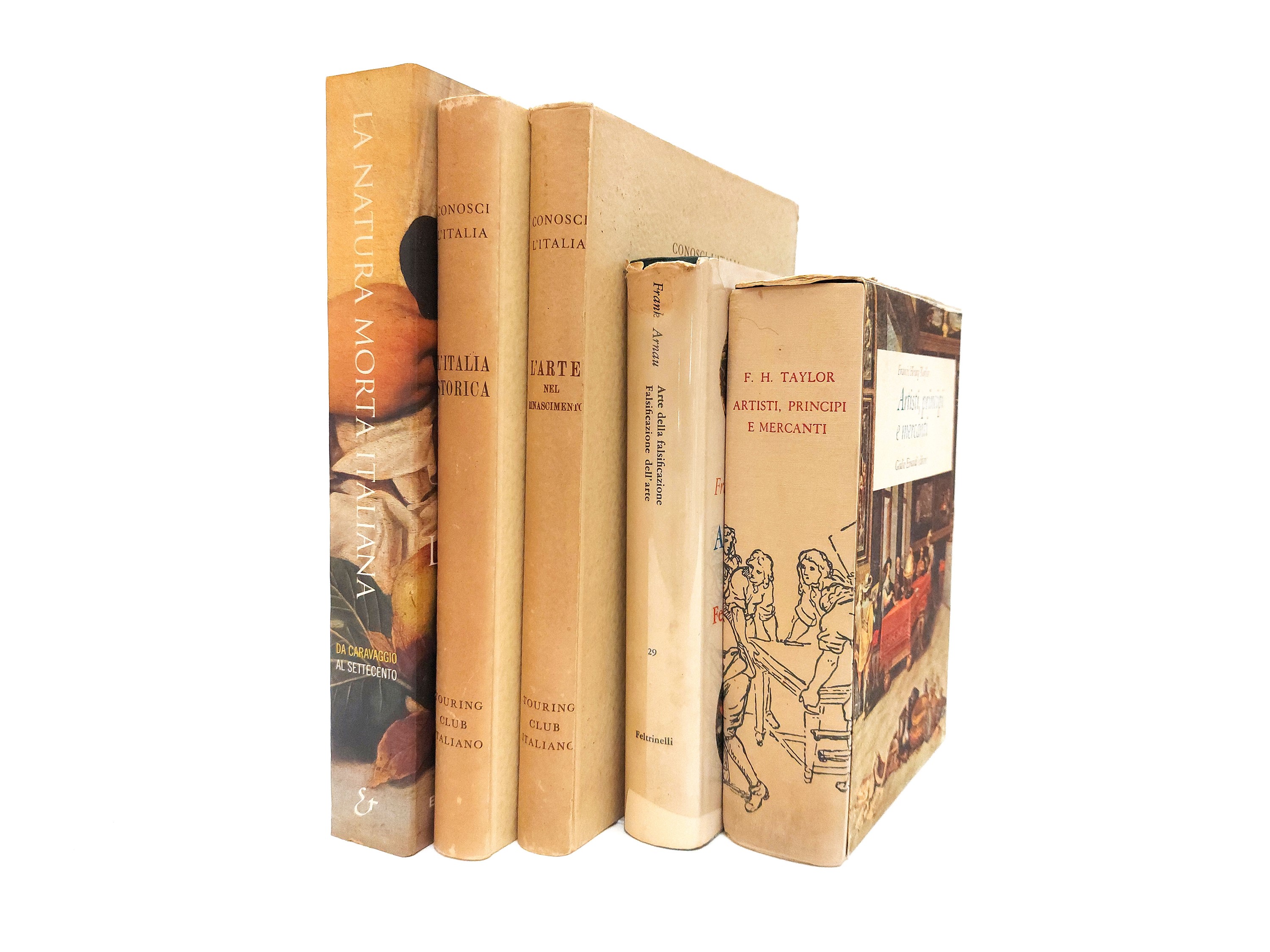 miscellanea di testi tra cui: La natura morta italiana, a cura di Mina Gregori, Electa, 2003 - Francis Henry Taylor, Artisti, principi e mercanti, Einaudi, 1954, in cofanetto (difetti) (5)