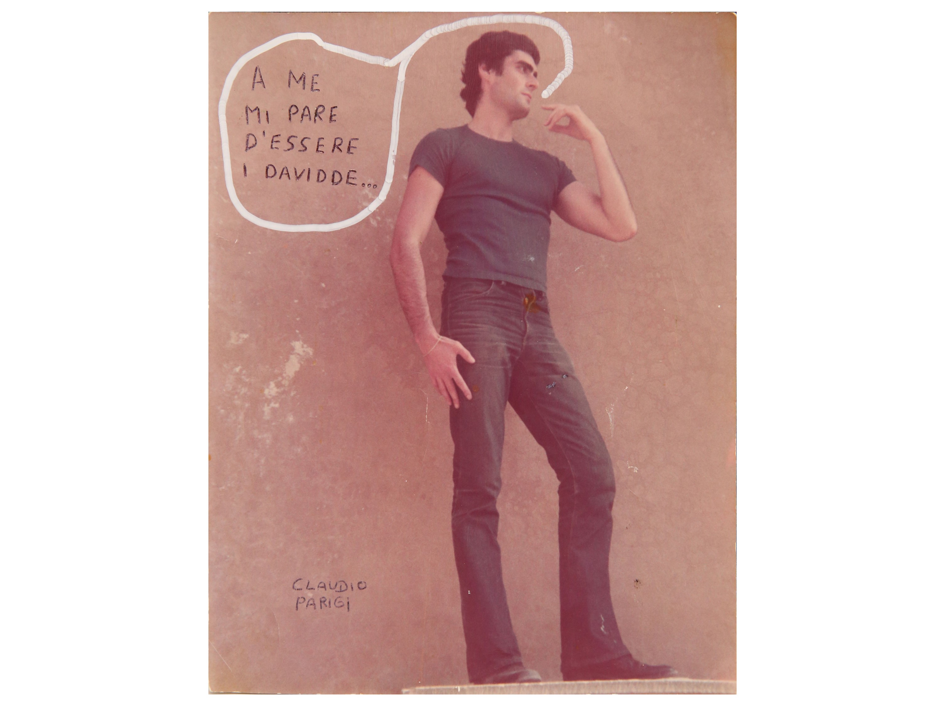 intervento a penna e pennarello su fotografia del 1975, firmata, firmata al verso, lievi difetti