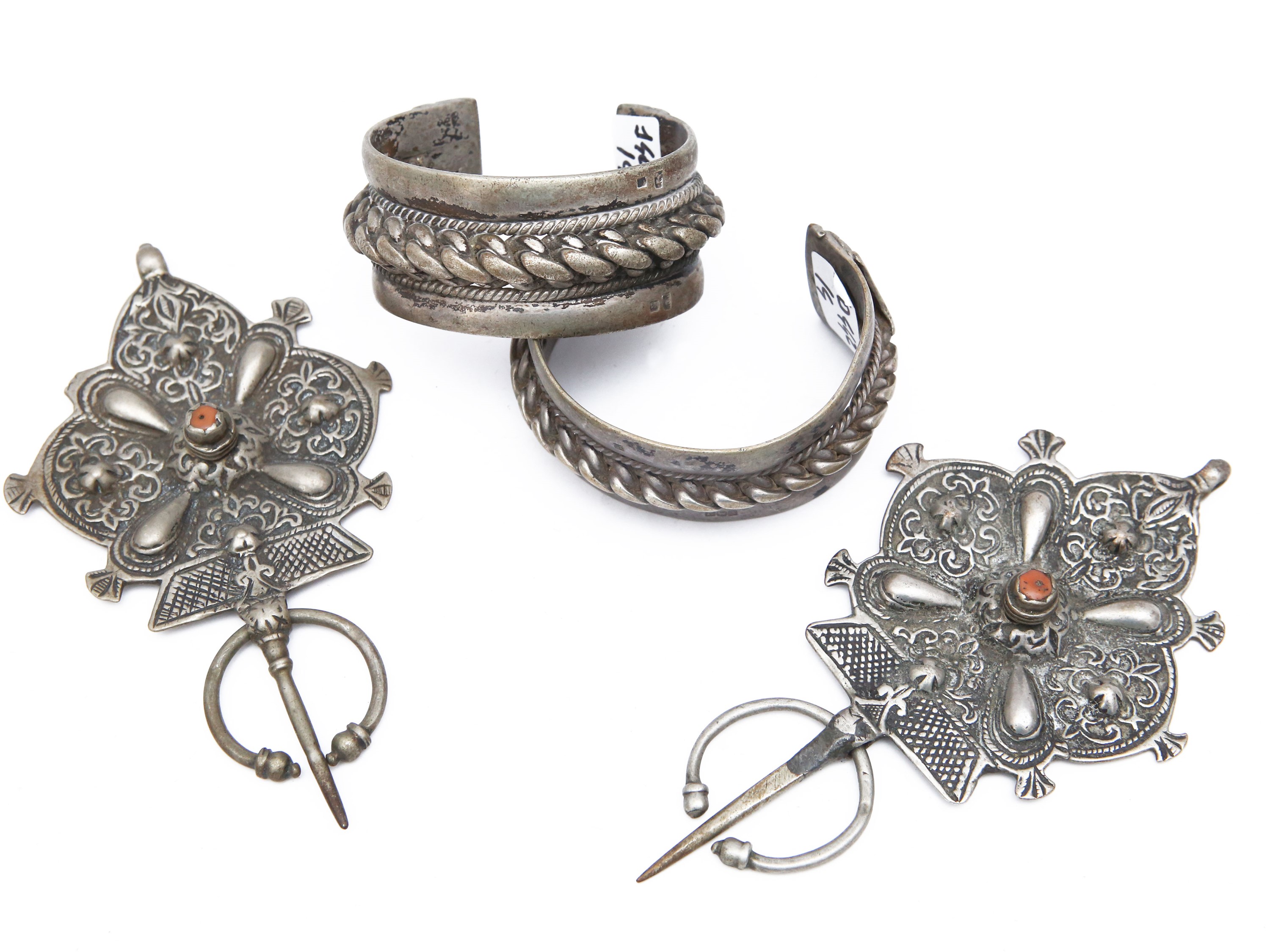 Asia composto da coppia di bracciali rigidi ed una coppia di grandi spille da mantello