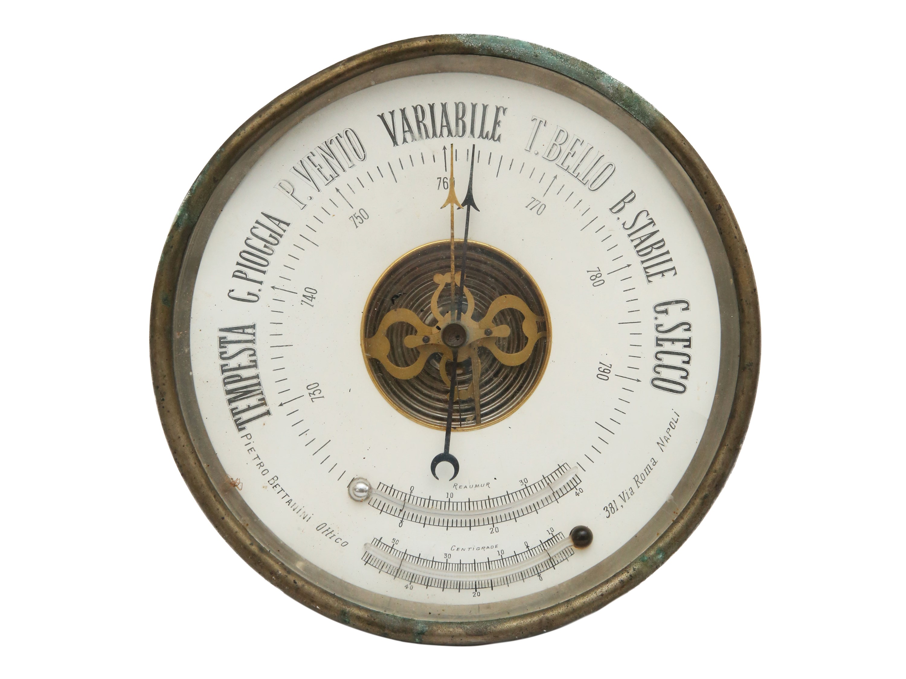 Barometro a parete in metallo, Pietro Bettanini Napoli
