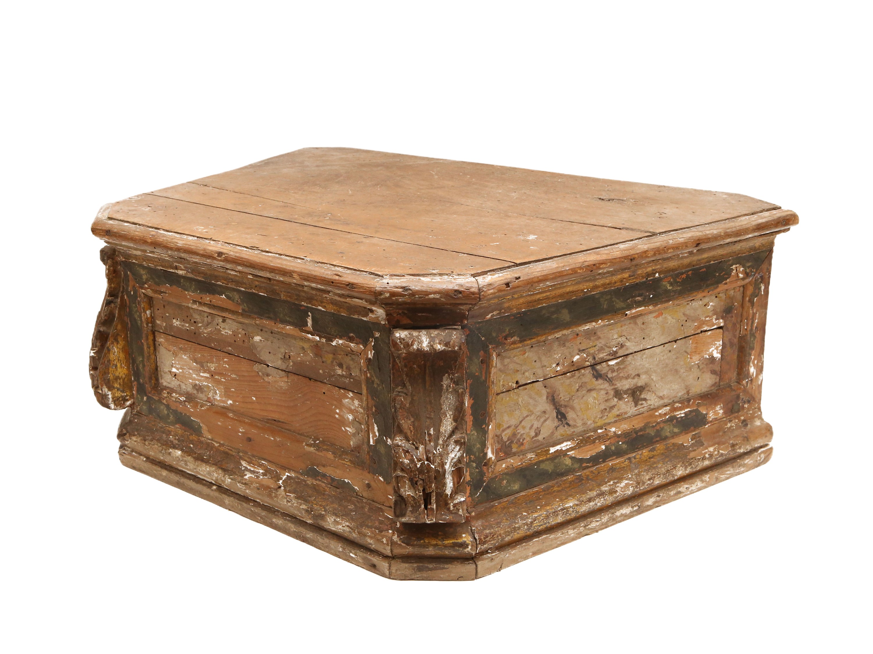 XVIII secolo dipinta a finto marmo, lesene intagliate come foglie d'acanto, difetti