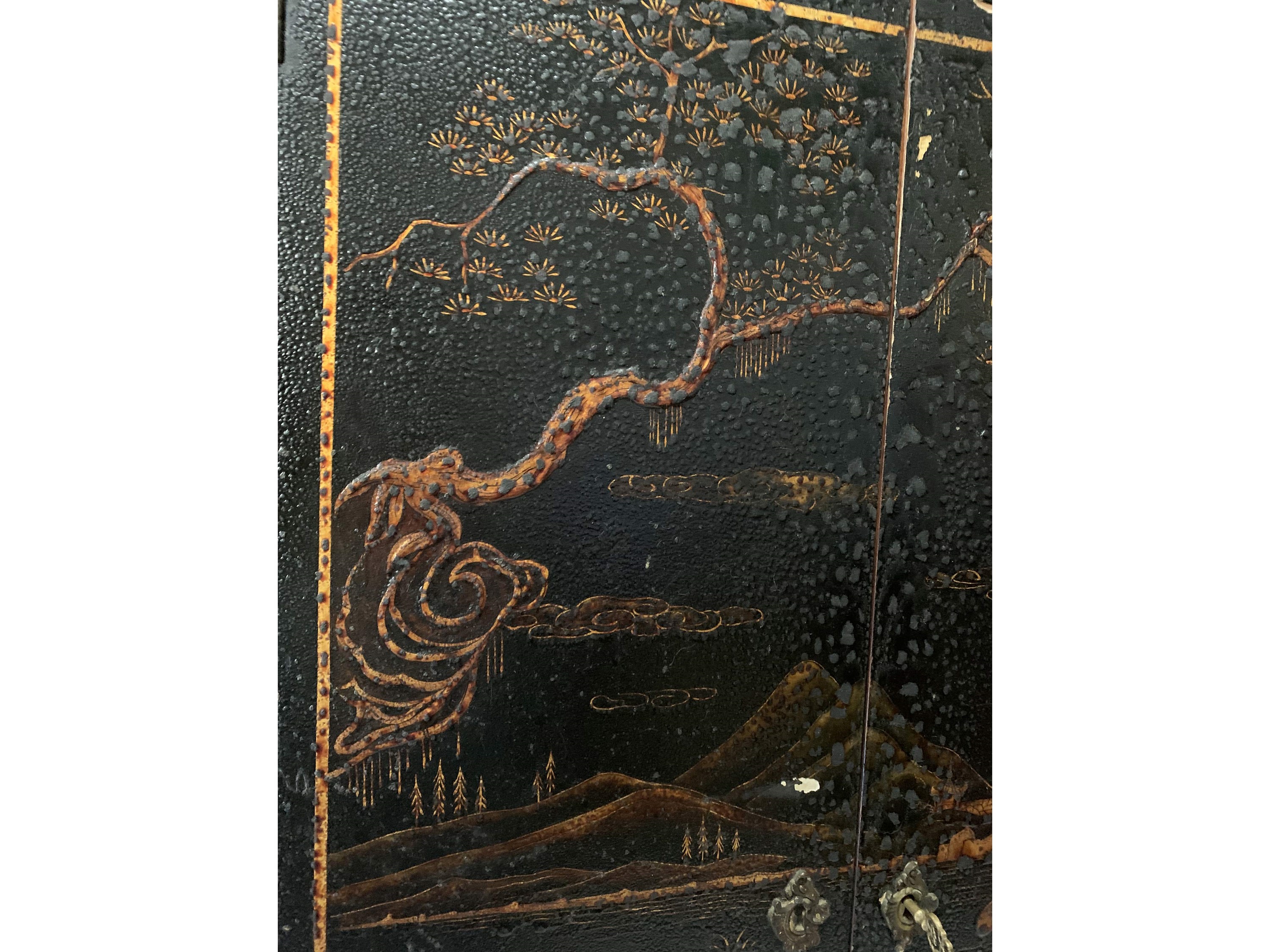 Cina, prima metà del XX secolo decorati con motivo a chinoserie nei toni dell'oro, piano con vetro molato a incasso, difetti