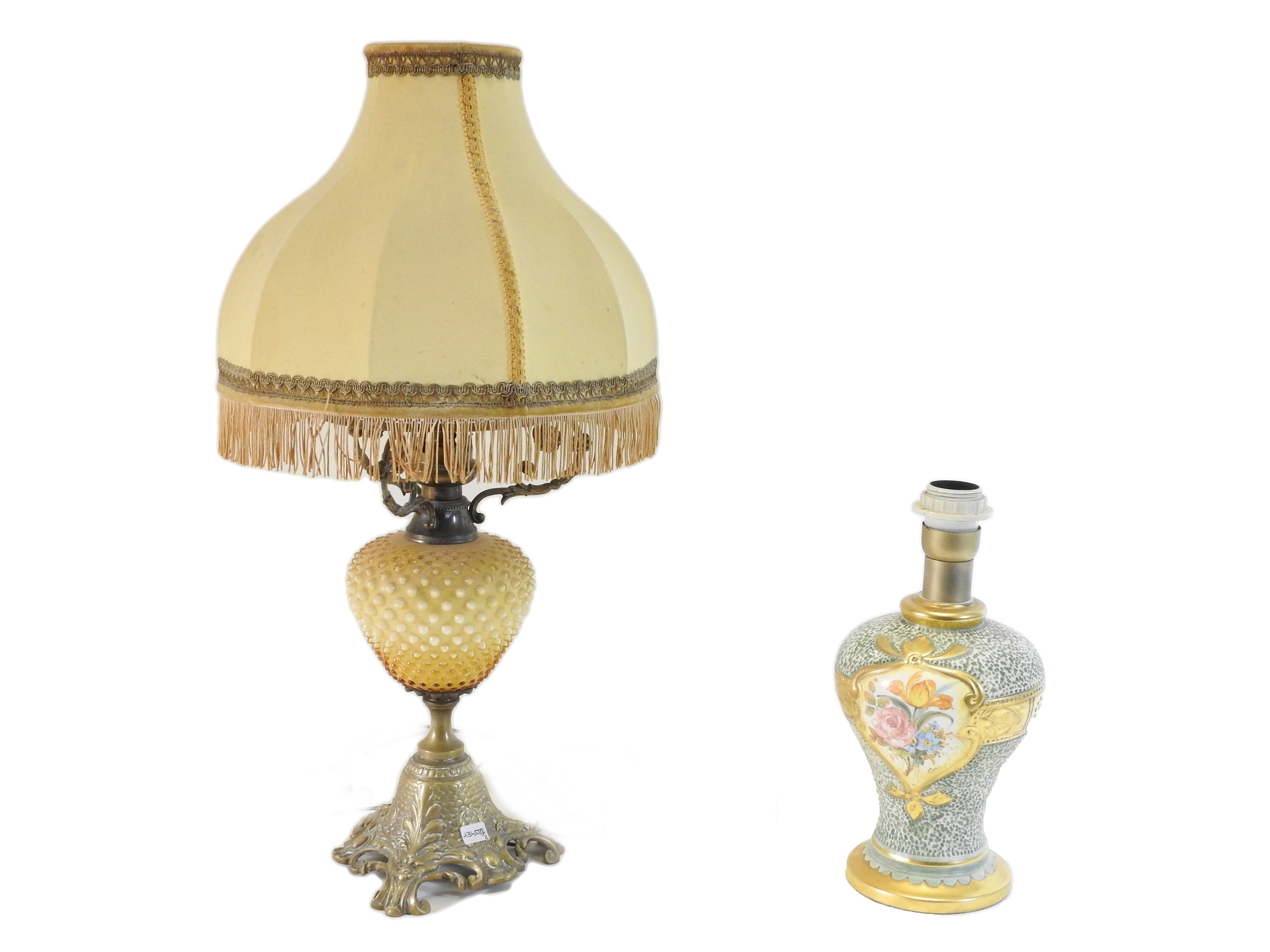 Anni Cinquanta uno in vetro e metallo corredato da paralume, lieve difetto ed uno un porcellana