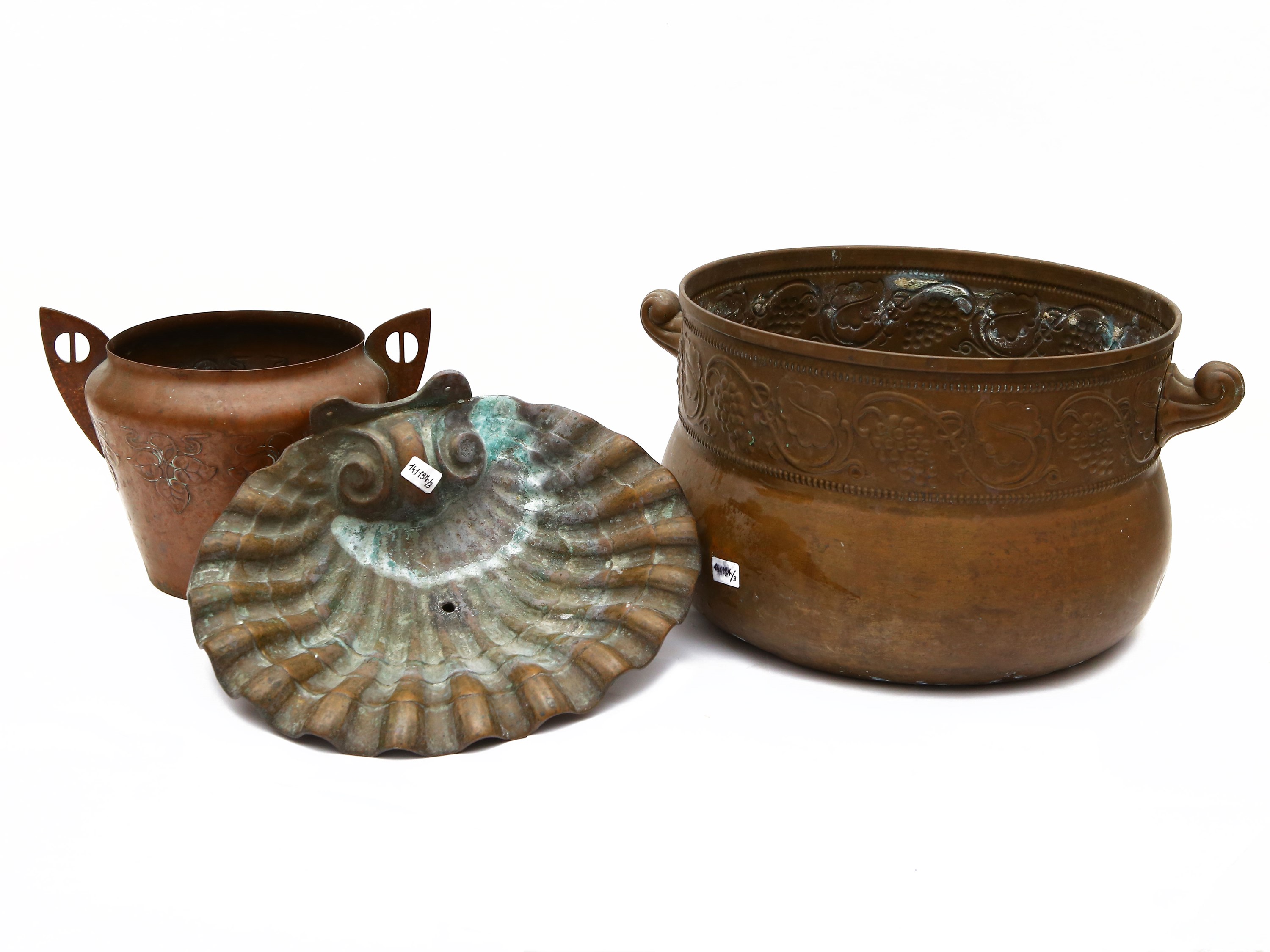 inizio del XX secolo di cui uno sbalzato con grappoli d'uva, abbinati ad una piccola vasca da fontanella realizzata come una conchiglia (3)