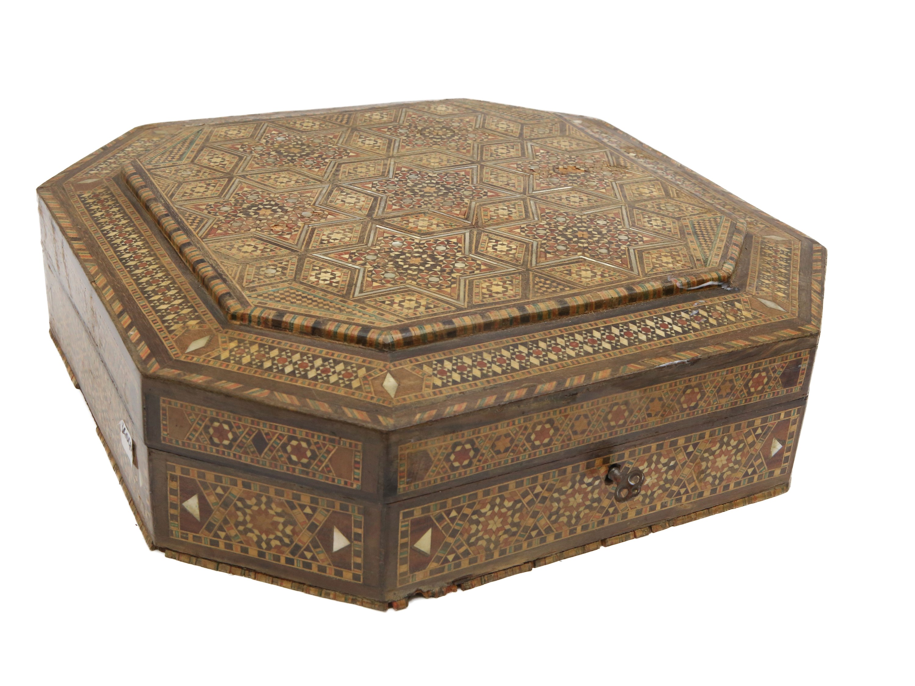 Nord Africa di forma ottagonale, con motivi di stelle a sei punte iscritte in esagoni, intarsiata anche all'interno, alcuni difetti