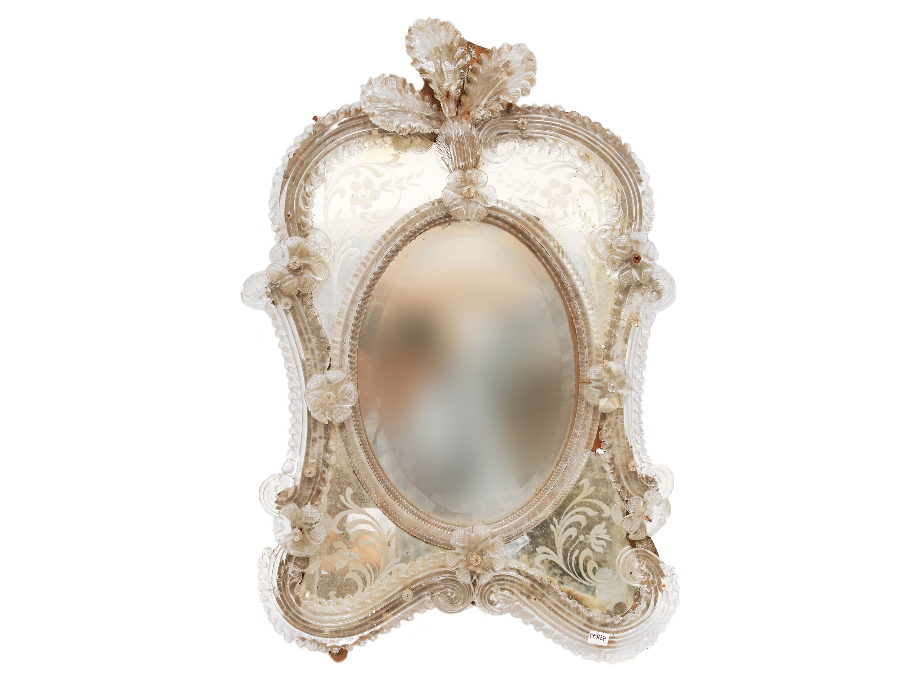 Grande specchiera da tavolo in vetro soffiato di Murano