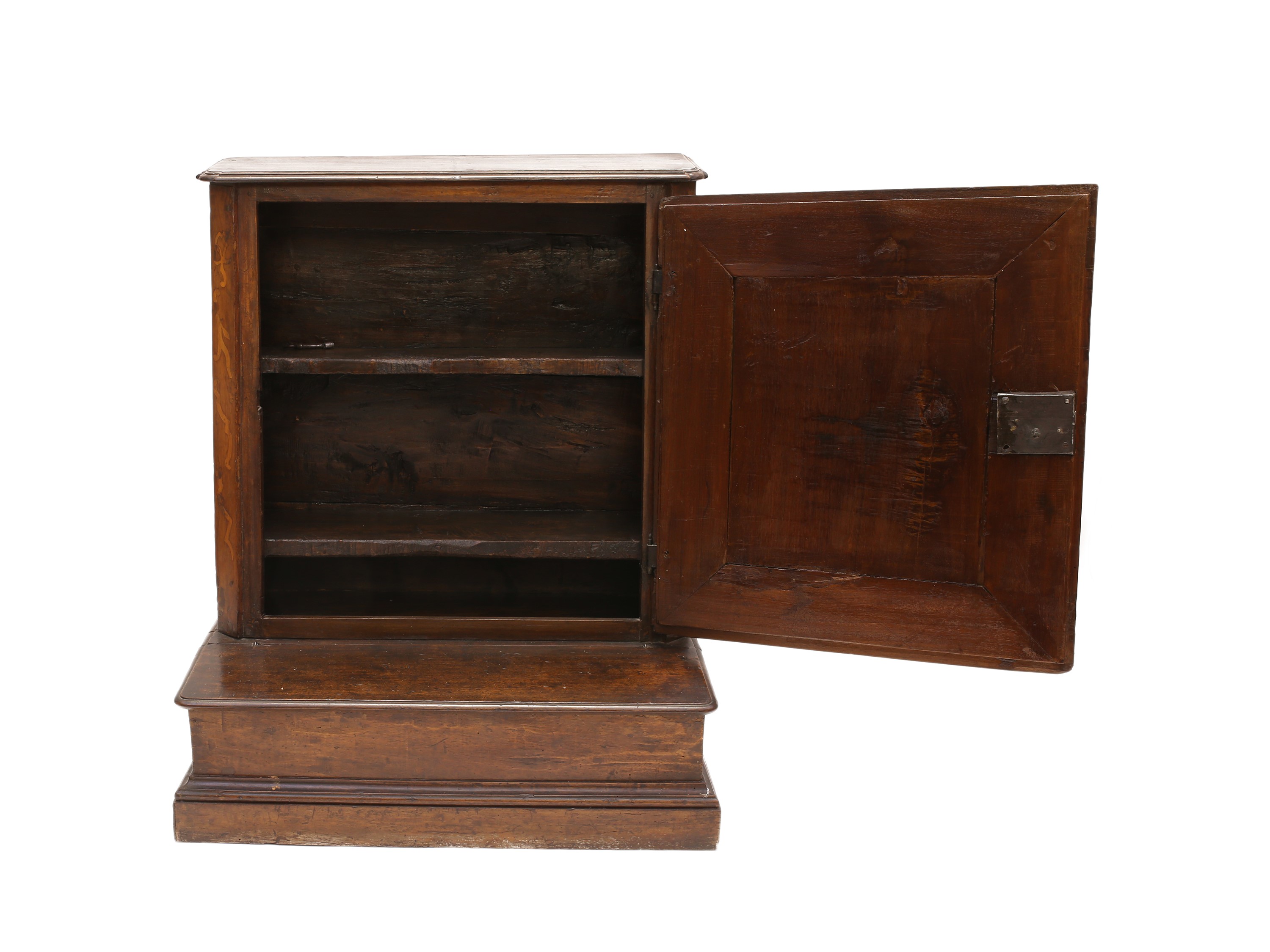 Italia settentrionale, XVII/XVIII secolo uno sportello intarsiato con volatili con cornici modanate sul fronte, base da alzarsi