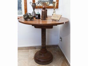 h cm 30x35 Francia, Anni Cinquanta realizzati con spicchi di rame martellato alternati a dettagli lignei intagliati [..]