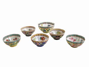 diam da cm 12 a cm 12,5 Manifattura Orientale dipinte a motivi vegetali, floreali e scene di genere, entro scatole [..]