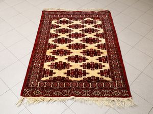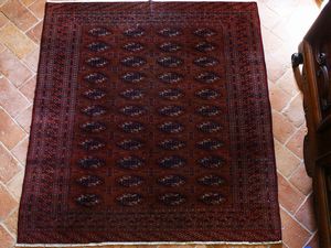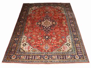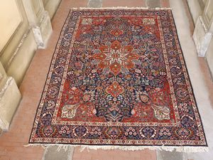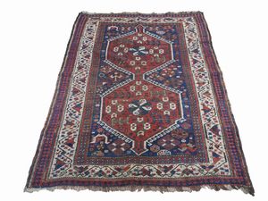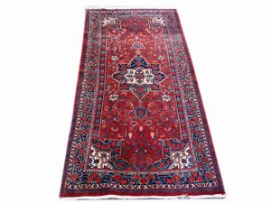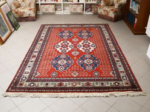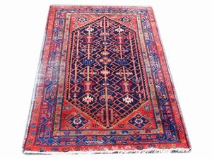 h cm 170x114 decorato con losanghe e motivi geometrici nei toni del rosso, blu e bianco, difetti