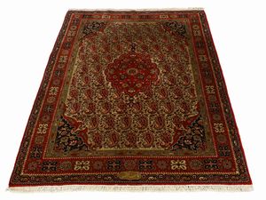 cm 190x87 fondo rosa, campo a motivo floreale nei toni del beige, del verde, del celeste e del blu