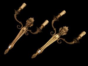 Coppia di applique in vetro e metallo, Perry King, Santiago Miranda, Gianluigi Arnaldi [..]